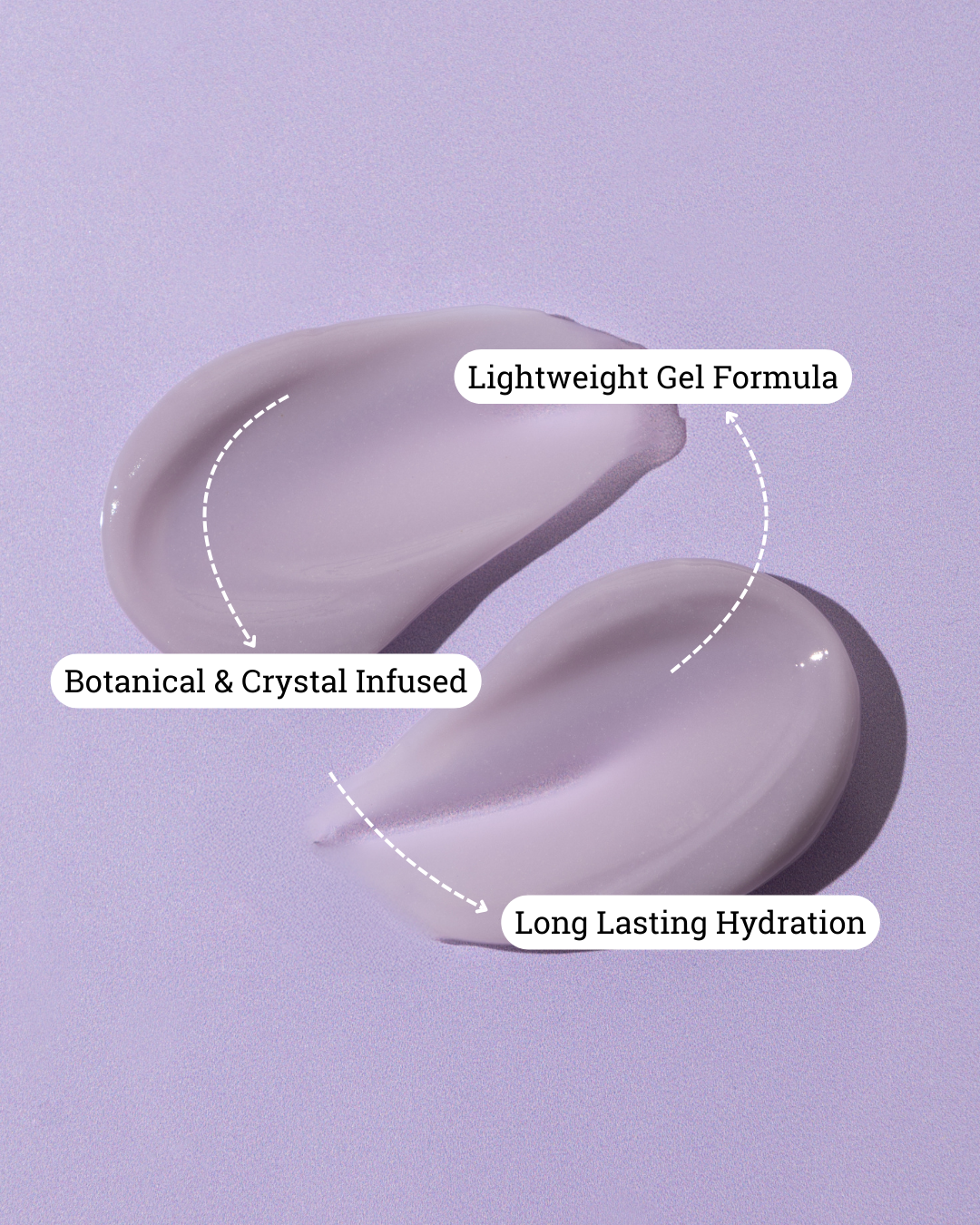 Elevate your glow with our high-vibe amethyst-infused antioxidant moisturizer, designed to protect and strengthen the skin barrier against environmental stressors. This lightweight water cream is made with hyaluronic acid, turmeric, rose, white tea, and sea kelp to deeply hydrate, brighten, and balance you and your skin’s energy morning to night.